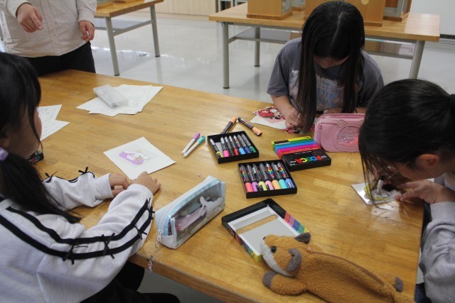 工作クラブは、プラ板に好きな絵を描いて、キーホルダー作り!お気に入りの作品ができました。