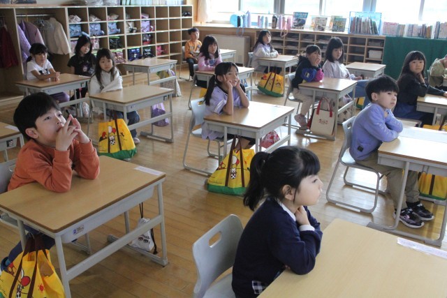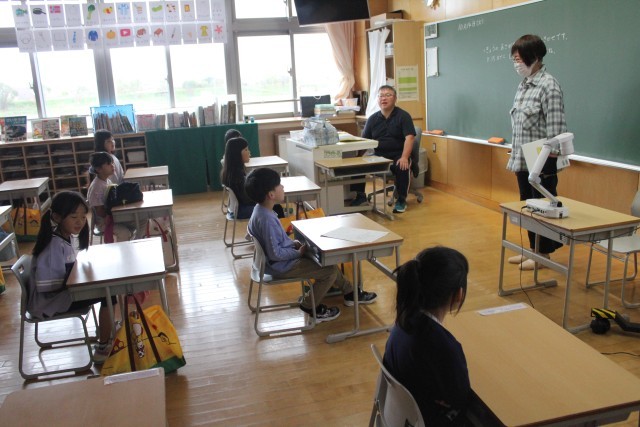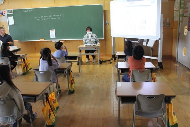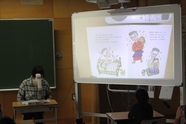 途中、すずちゃんが子守歌を一生懸命歌う場面と、おばあちゃんが優しく子守歌を歌う場面が出てきました。ボランティアの方がとても上手に歌い分けてくださっていて、1年生のみんな、すっかり絵本の世界に引き込まれていました。