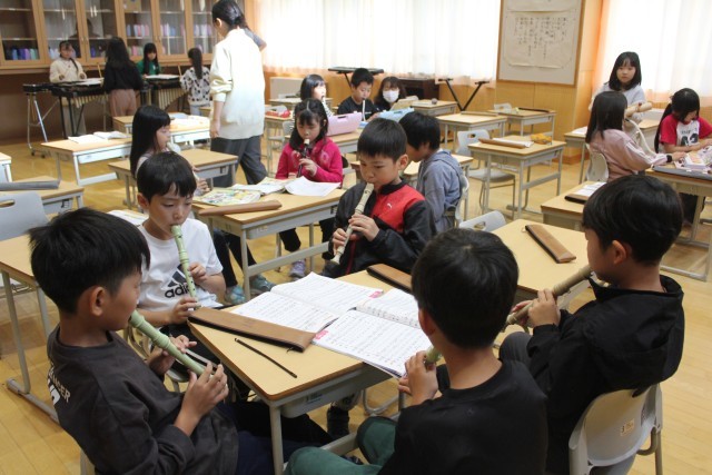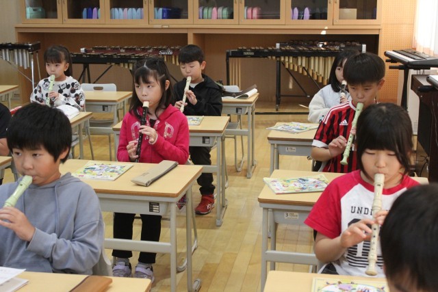 リコーダーは、今年から初めて挑戦しているとは思えないほどの演奏で、3年生の学級の音色が一つになっていました。