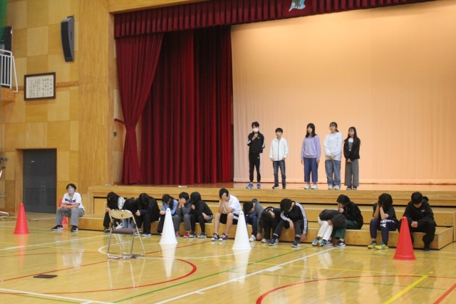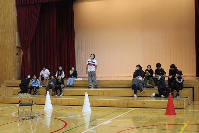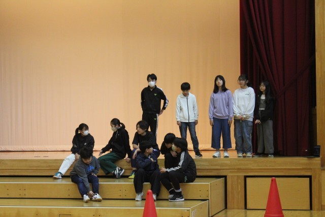 今日の2時間目、6年生は体育館で劇の練習に取り組んでいました。