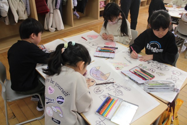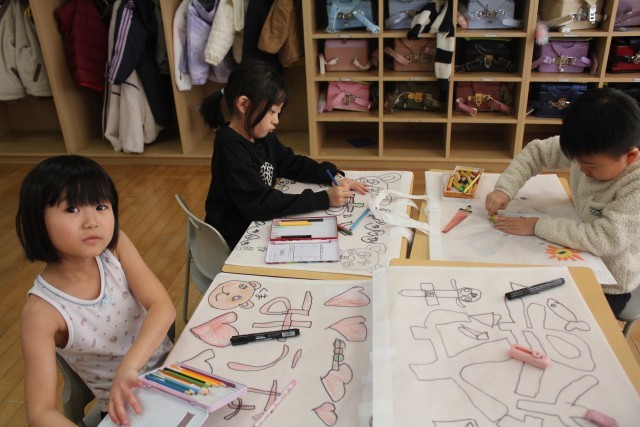 好きなキャラクターを描いたり、好きな動物や食べ物を描いたり、大きく自分の名前を書いたりしている人もいました。