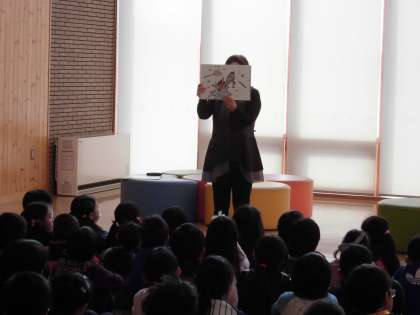 12月13日(水)、朝の時間にホールで低学年対象のおはなし会がありました。地域の方が絵本の読み聞かせをしてくださいました。子どもたちはおはなしに集中し、聞き入っていました。
