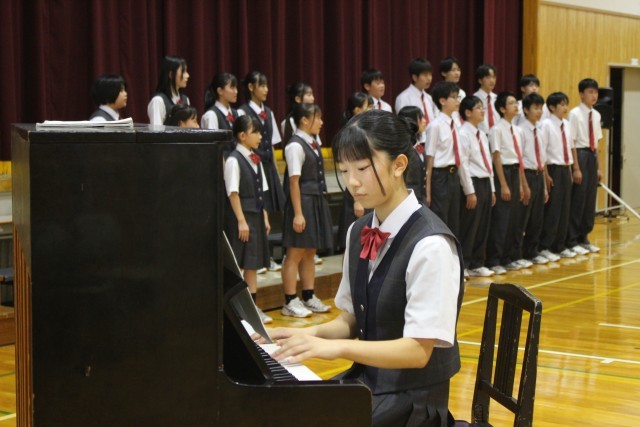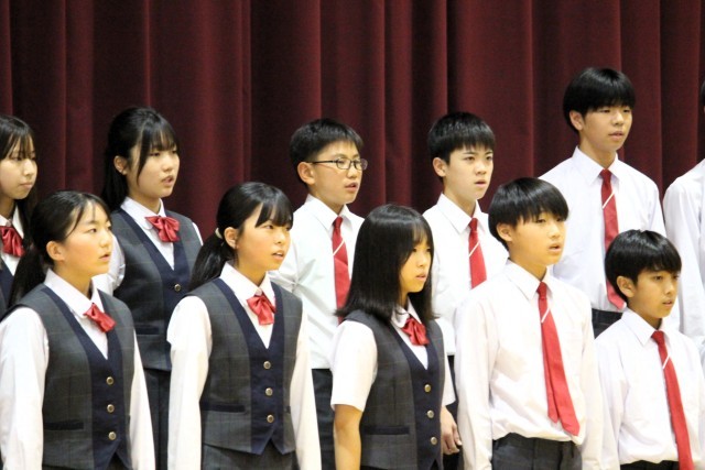 1年生は「大切なもの」、2年生は「手紙~拝啓 十五の君へ~」、3年生は「友」を歌いました。どの学年も混声合唱らしいハーモニーで表現し、学年のカラーの出た素晴らしい合唱を披露しました。ぜひ1・2年生は3年生の息のそろった歌声をまねてほしいです。