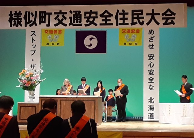 1月25日(日)に中央公民館にて交通安全住民大会が行われました。これは交通事故のない安全で住みよい様似町を実現するために、安全意識の高揚と交通安全運動の推進のため、毎年行われているものです。