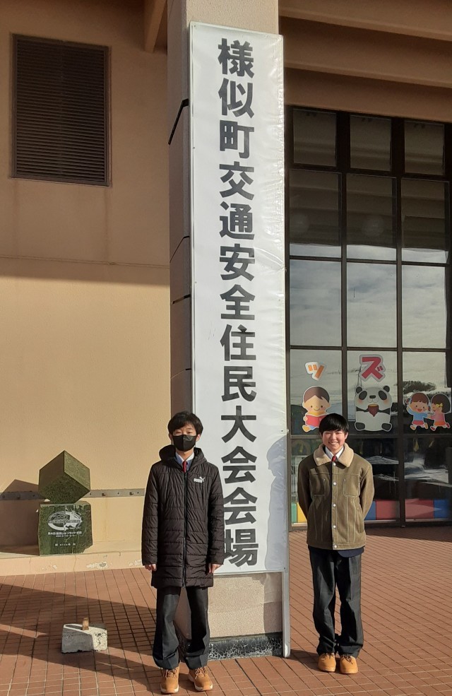 そこで中学生を代表して、本校生徒会の副会長が交通安全宣言をしました。