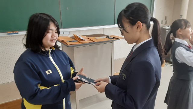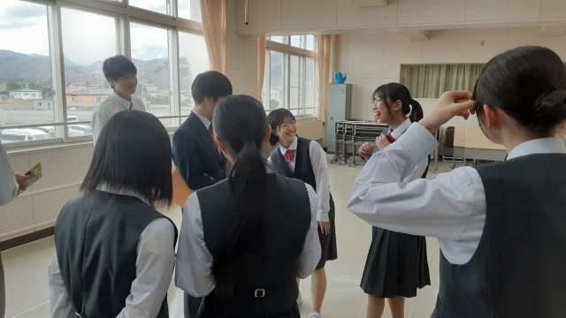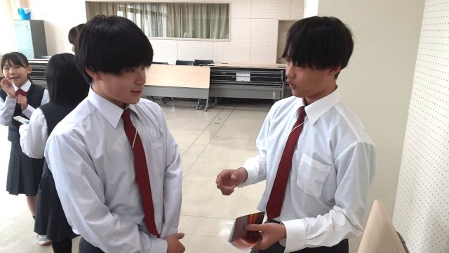 本日の学活では、修学旅行に向けた「PR活動」の事前練習を実施。修学旅行先の仙台駅で、様似町や様似中学校の魅力を伝えたり、自分たちの活動をアピールしたりするための本番を想定し、PRする人と通行人役に分かれてプレゼンテーションを行いました。今日は職員室の先生方も見に来てくれたので、生徒たちは積極的に声をかける姿も見られました。最初は緊張していた3年生も、練習を重ねるうちに表情が明るくなり、堂々とした話しぶりに。