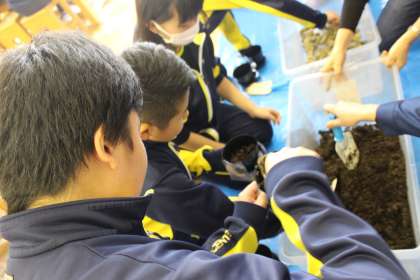 12月17日には1年生の総合的な学習でアポイドリームプロジェクトの活動を行いました。 様似町固有の植物であるエゾマツムシソウとコハマギクの種を植えて持ち帰り、これからは家で育てていきます。来年の5月末頃まで家で育て、育った苗はエンルム岬に植える予定です。観察記録を書きながら大切に育て、大きな苗にできることを願っています。