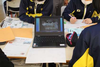 宿泊研修振り返り 公開日 2021/10/25 更新日 2021/10/25 2024年度 10月25日(月)の5,6時間目で、2年生は宿泊研修の振り返りをしました。 自主研修で訪問した場所についての資料や写真を見て、わかったことや学んだことなどをまとめました。しっかり振り返り、良いまとめができることを期待しています。 本日のスクールランチは、インカのめざめチキンカレーとみかん入り牛乳プリンでした。カレーライスを何度もおかわりする生徒もいて、美味しそうに食べていました。