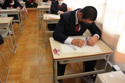 本年度6回目の学力テストです。入試まであと3ヶ月となり、最後まで粘り強く問題に取り組んでいました。また、「問題を解く時間が足りない」といった声があり、課題も見つかったようです。