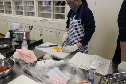 12月17日(金)の3,4時間目、家庭科の時間で2年生が調理実習を行いました。