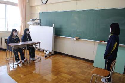 3年生面接練習 公開日 2022/01/18 更新日 2022/01/18 2024年度 1月18日(火)の6時間目で、3年生が高校入試に向けて面接練習をしました。 面接室への入退室やあいさつの練習を行い、お互いにアドバイスし合いました。生徒たちは積極的にアドバイスを出し、みんなで協力して入試に向かっていこうという気持ちが感じられました。 入学試験の日も近づいてきました。3年生全員で高め合って、万全の準備で試験に臨めると良いですね。