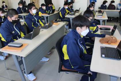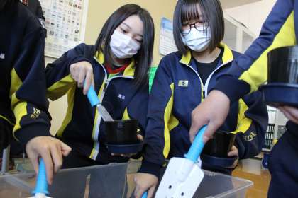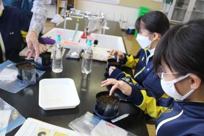 3時間目はZoomを使って、静岡大学の増澤教授に高山植物やアポイ岳の講話をしていただきました。4時間目はアポイファンクラブの方々に教えていただきコハマギク、エゾマツムシソウ、アポイクワガタの種をプランターに植えました。これから6月まで観察、水やりをして育てていきます。