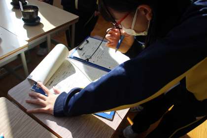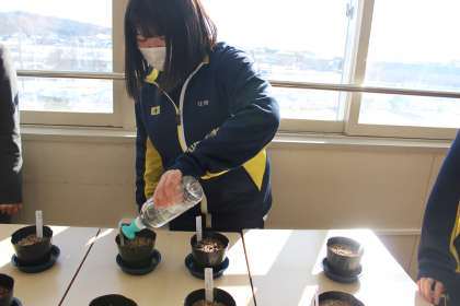2月2日(水)の昼休み、1年生がアポイ岳の高山植物のお世話をしている様子です。