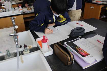 2月14日(月)の5時間目、3年生理科の時間で昨年度の入試問題を解きました。