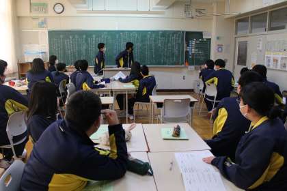 各学級で後期生徒会活動の反省について意見を出し合いました。各学級活発な議論となり、ひとりひとりが生徒会活動を作っていこうという意識をもてたようです。特に3年生からは多くの意見・質問が出され、最高学年として大きく成長した姿を見せてくれました。