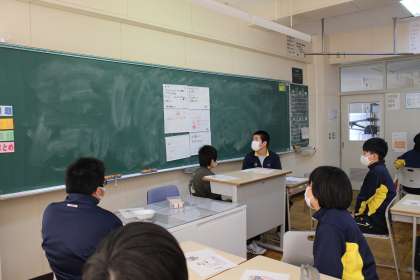 各班から出されたアイディアをもとに、学級議長・副議長が中心となってどんな発表をするか話し合いました。生徒たちは積極的に意見を出し、スムーズに進める事ができたようです。