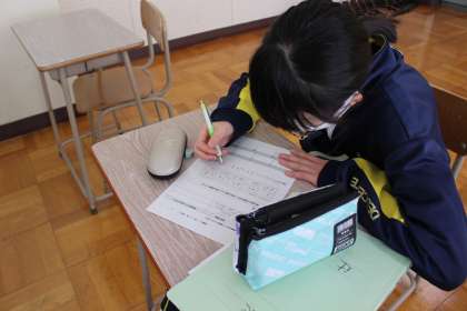 この日は音階上で隣り合った音程に進行する、順次進行について学びました。そして、順次進行の特徴を活かし、終わる感じをイメージした4小節の旋律をつくりました。最初はつくるのが難しかった様子でしたが、楽しく課題に取り組み、完成させることができたようです。