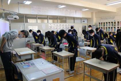 授業の終わりには3年間授業でお世話になった先生へ感謝を伝えていました。来週3月15日に3年生は卒業します。残りの短い時間を大切に過ごしてほしいですね。