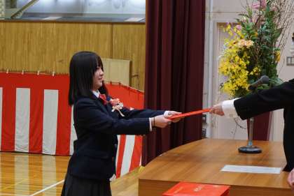 3月15日(火)は卒業式がありました。3年生全員が出席し、無事卒業証書を受け取ることができました。3年生からの答辞では在校生や教員、保護者の皆様への感謝が述べられ、その話す姿は先輩としての頼もしさが感じられました。3年生の合唱はこれまでの成長が感じられる素晴らしい歌声を響かせてくれました。