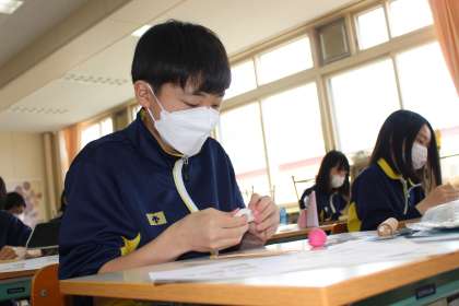 2年生の美術では粘土を使って、雪だるまや3色だんご、みかんや桜などを表現していました。自分が作りたいものを表現しようと工夫して、楽しみながら夢中で頑張っていました。