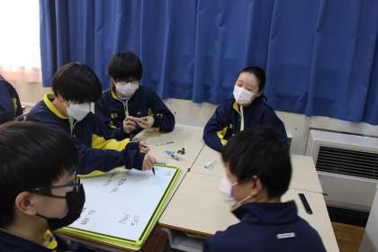 1年生の学活では、クラスの課題と、こんなクラスにしたいという思いを、班の中で話し合って発表していました。