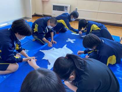 学級旗・横断幕製作の様子