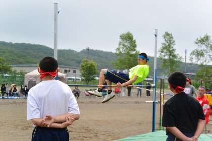 体育大会の個人種目では、男女200M走や走り高跳び、砲丸投げなどが行われました。走り高跳びでは、1年生と3年生が競い合っていたり、砲丸投げでは新記録が2人も出ていたりしていました。