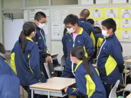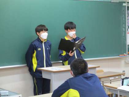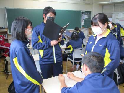 6月8日の様似中学校でも、1日の終わりとして帰りの会が行われていました。2年生の帰りの会では、学級の日直や班の日直が、今日の目標や授業の振り返りを発表しました。