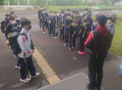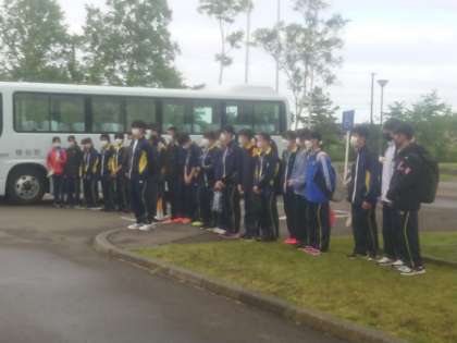 また、見送りに来ていただいた保護者の方へ向けて、男子キャプテンから「団結してがんばるので、応援していてください」という挨拶をしました。体育大会では競い合った他学年の生徒とも団結し、様似中学校の代表選手として頑張ってほしいです。