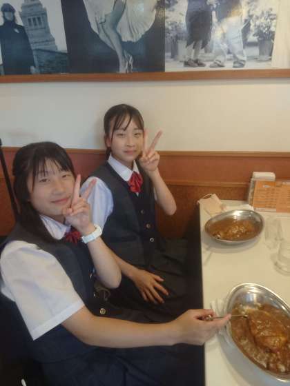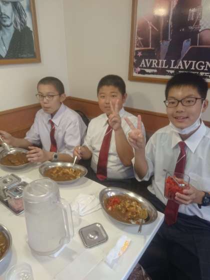 インデアンカレーにて、食事中の班と遭遇。 カレーを満喫しています。
