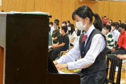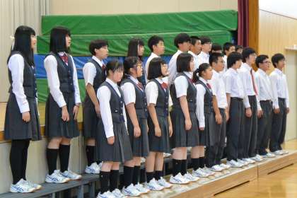 様似中学校では3年ぶりの歌声集会でした。今回の歌声集会に向けた取り組みをもとに、文化祭での合唱にも取り組んで欲しいです。