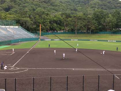 予定より遅れて、14時30分に浦河二中・様似中の先攻でプレイボールです。