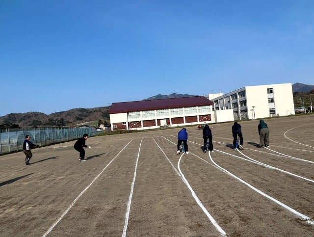 グラウンドライン引き 公開日 2025/05/01 更新日 2025/05/01 2025年度 今年度の体育大会は5月24日(土)に実施されますが、ゴールデンウィーク明けには体育大会の練習、特別日課が開始されます。その前に先生方でグラウンドのライン引きを行いました。風が強く寒い中でしたが、コーナーから100Mの直線までラインを引きました。生徒たちが練習に専念できるよう、先生方も頑張ってくれています。今年こそ天気もグラウンドも、コンディションの良い中で体育大会をしたいですね…。